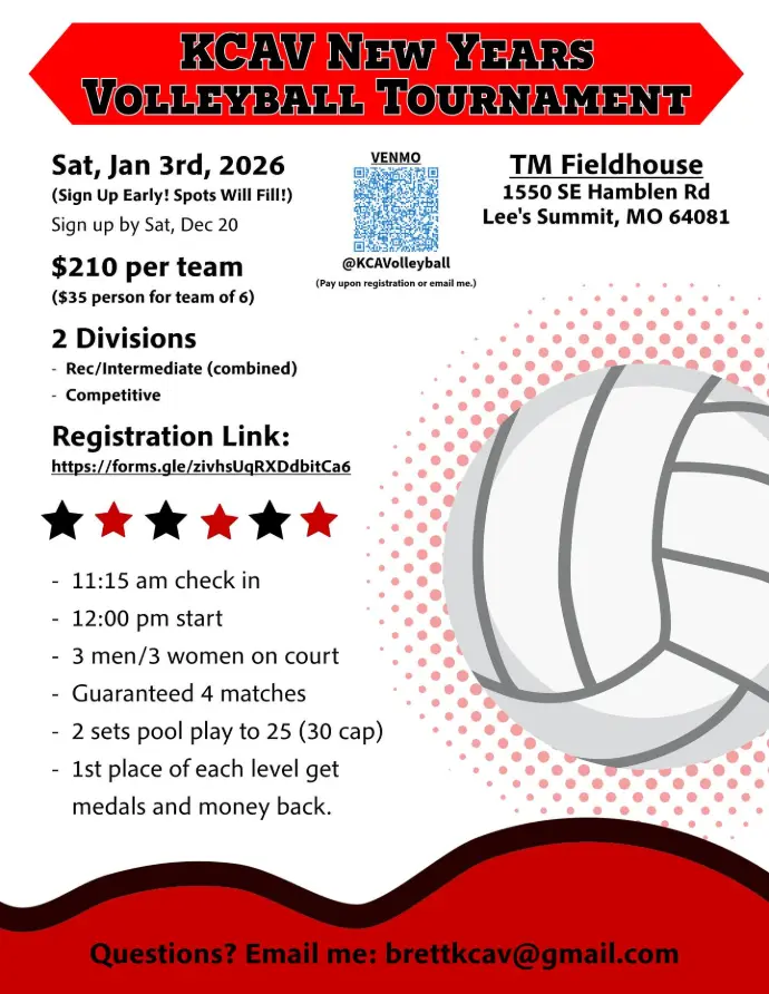 Come join our new year’s tournament on Jan 3, 2026! Limited spots available as we look to create a great tournament for Kansas City and the Midwest.